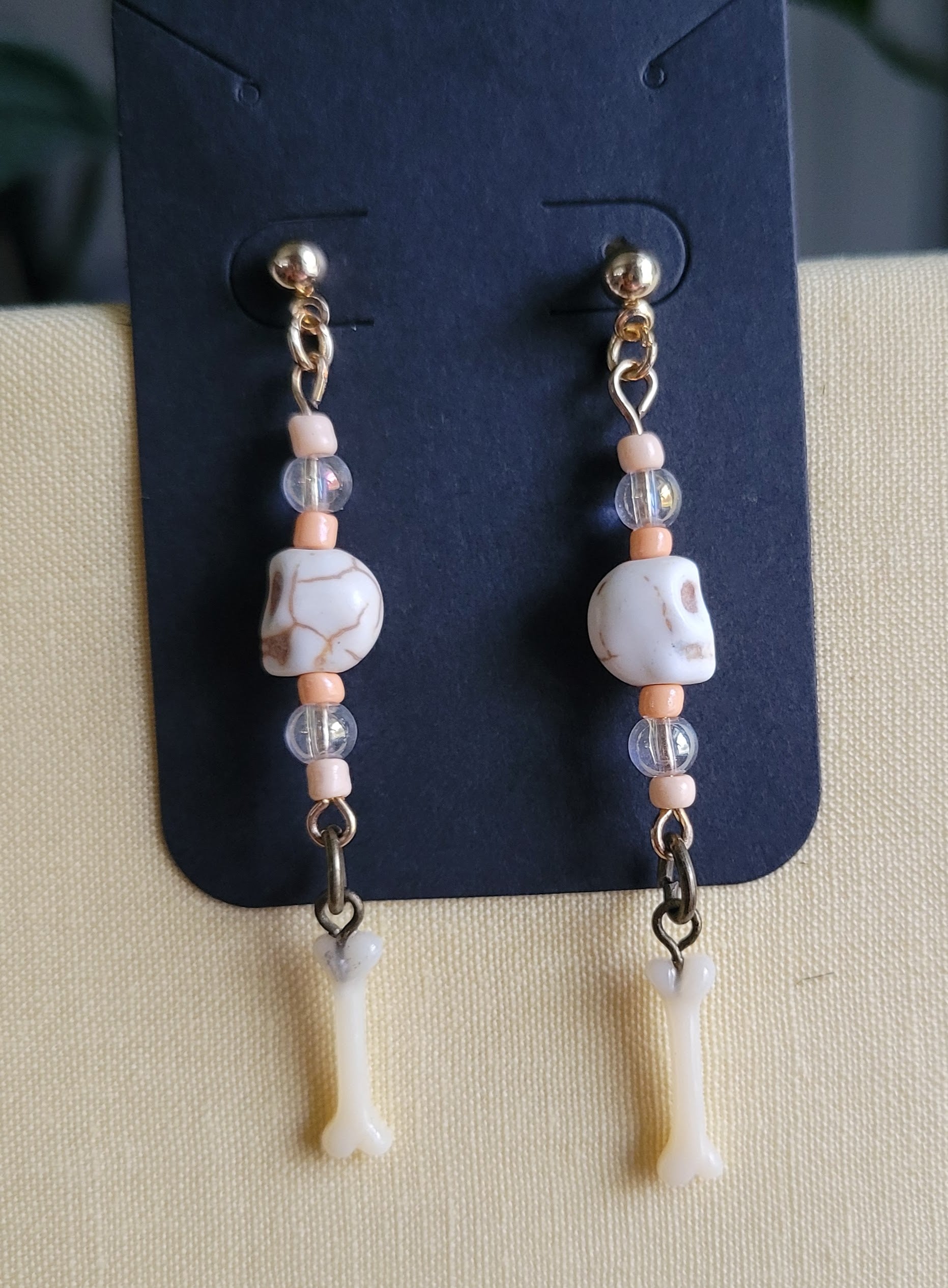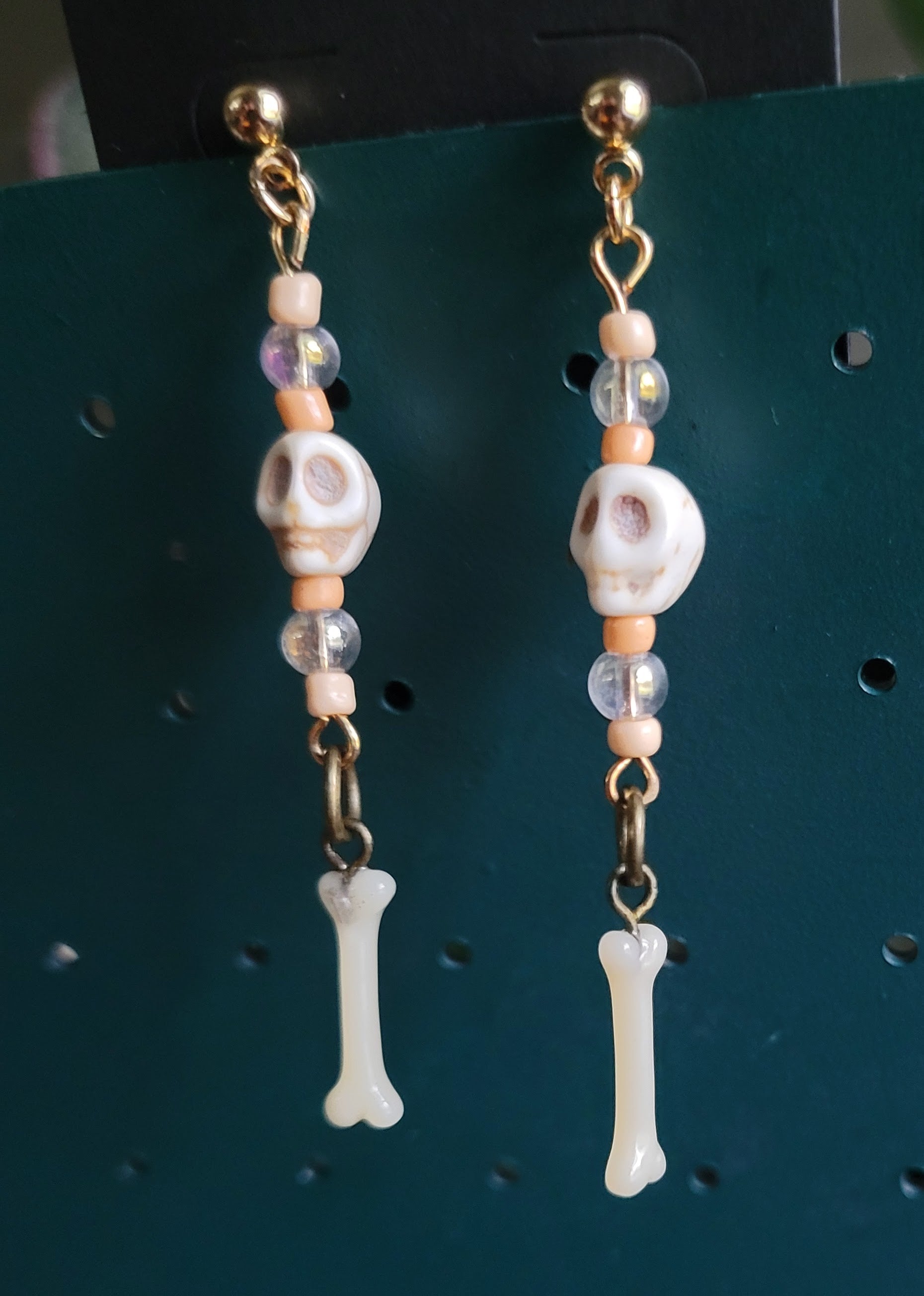 These are so cute, tiny little plastic femurs and peachy beads.